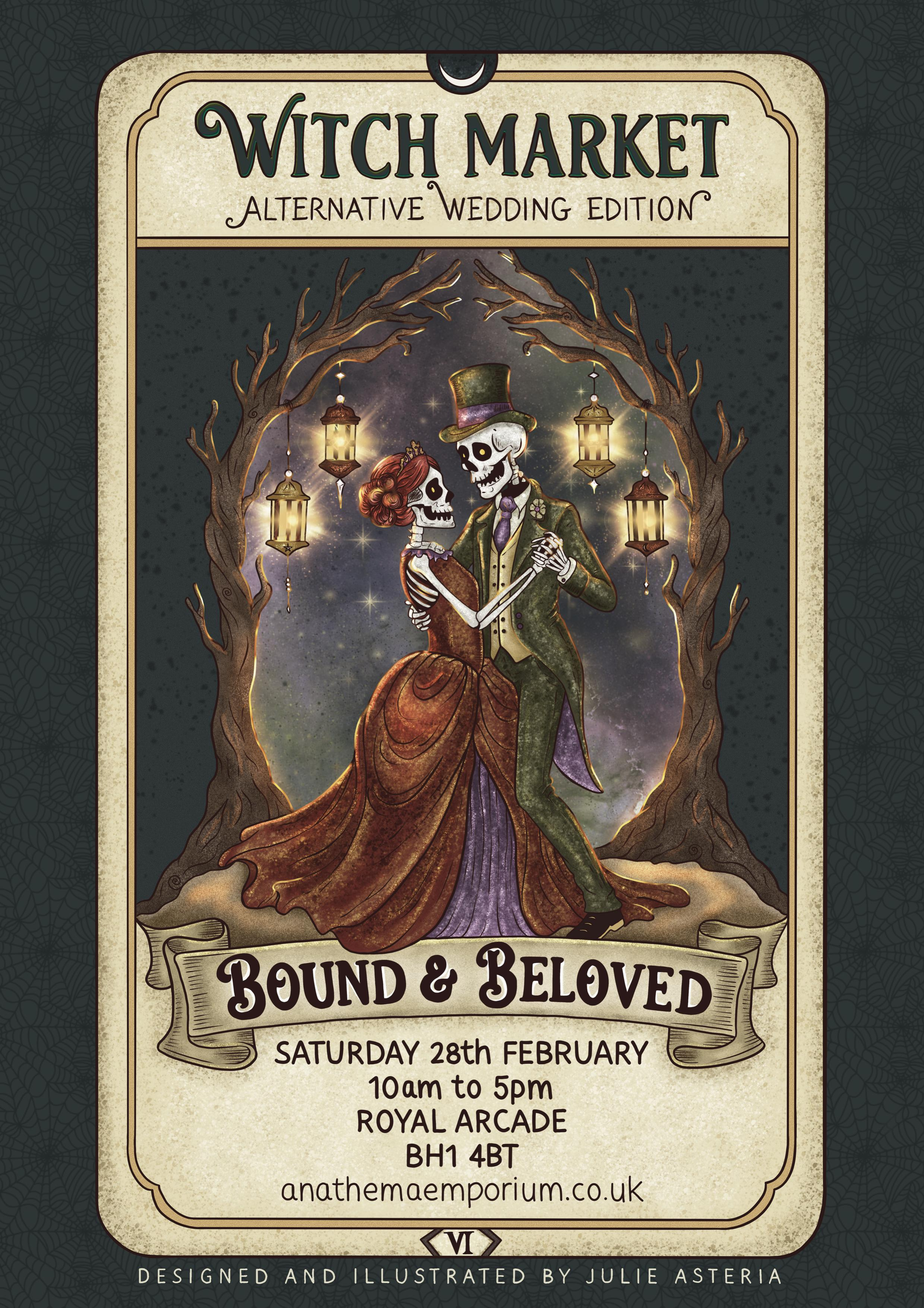 | Bound & Beloved is a special themed edition of the much-loved Witch Market hosted by Anathema Emporium, celebrating love, devotion, and sacred union in all their forms. Taking place within the historic Royal Arcade, this Alternative Wedding Market is created for those who walk a Pagan, Witchcraft, Heathen, or spiritual path and wish to honour love in a way that feels authentic, meaningful, and deeply personal. Bound & Beloved is perfect for handfastings, vow renewals, queer and non-traditional ceremonies, sacred partnerships, or simply for those who love the romance and ritual of commitment beyond the mainstream. Alongside Anathema’s usual carefully curated selection of magical makers, artists, and practitioners, this edition will feature wedding-focused offerings such as ritual tools, altar items, bespoke jewellery, symbolic gifts, handcrafted décor, ceremonial accessories, and keepsakes infused with intention. Visitors can expect a welcoming, inclusive atmosphere rooted in community and creativity. Whether you are actively planning a ceremony, gathering inspiration for the future, or simply wish to immerse yourself in a space that honours love as sacred magic, Bound & Beloved offers a gentle, joyful celebration of connection and choice. All are welcome, regardless of path, identity, or relationship style. Come as you are, and celebrate love on your own terms. Saturday 28th February, 10am to 5pm, Royal Arcade, Bournemouth, BH1 4BT |
