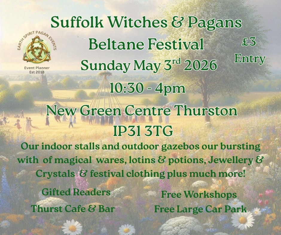 | Hail & Welcome to the Suffolk Earth Spirit Pagan & Alternative Summer Fayre. Come along and join us to celebrate the season of summer. We will have outdoor gazebos and an indoor market both brimming with a selection of beautiful, ethical and spiritual gifts many handcrafted wares crafted and inspired by nature, the woodland fae, and spirits with an added touch of pagan symbolism and magic. Our Exhibitors have vast experience and knowledge, which they are happy to share. There will be free talks & workshops. The onsite cafe will also have a great selection of food and beverages to tempt you.The Thurst Cafe also has a bar, for you to enjoy a relaxing drink, not sure if they serve mead. Entry £3 on the door or tickets can be purchased in advance at www.earthspiritevents.co.uk/events Free large car Park |
